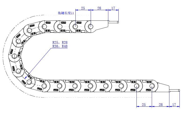 1.拖鏈型號:15-II 總長L=L1+28*2